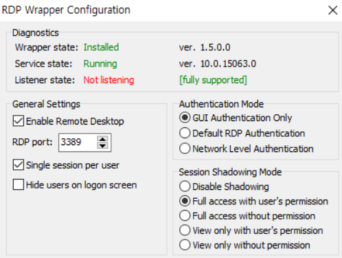 3. 설치 후 "RDPConf" 실행해서 서비스 상태 확인