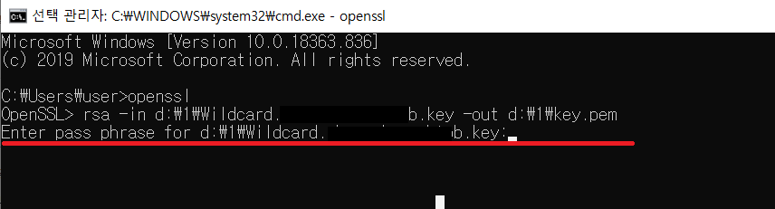 2) 명령어를 실행해서 key 파일을 pem 파일로 변환